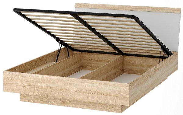 Кровать с ортопедическим основанием и подъемным механизмом Соната КРС-1400 Дуб Сонома/Белый глянец
