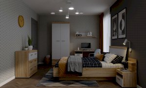 Кровать с ортопедическим основанием и подъемным механизмом Соната КРС-1600 Дуб Крафт белый/Антрацит