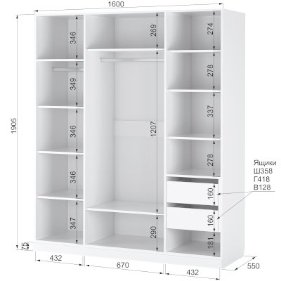 Наполнение шкафа выдвижные ящики / зеркало / штанга