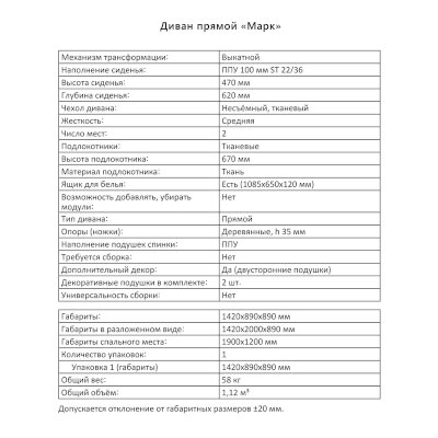 Габариты спального места: 190х120 см