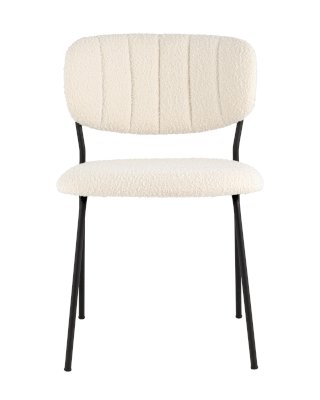 Современный обеденный стул без подлокотников и металлическими ножками. Обивка выполнена из мягкой и легкой ткани букле. Красивый и очень мягкий материал, который оставляет ощущение теплоты и уюта. Металлический каркас черного цвета огибает спинку и плавно переходит из подлокотников в ножки. Широкое сиденье обеспечивает удобную посадку и уют. На подлокотниках для дополнительного комфорта предусмотрены мягкие накладки.
