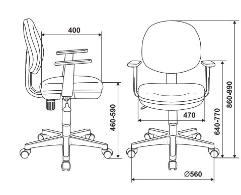 Высота с подлокотниками: 640-770