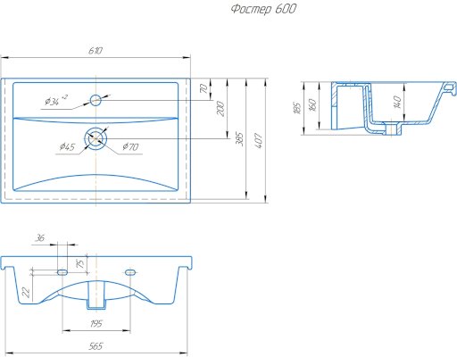 • 600 - (ШхГхВ), в см: 61х40,7х14