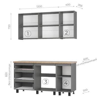 В комплекте раздельная столешница Дуб кера 38 мм (1200 мм и 400 мм)