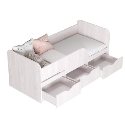 Кровать "Стандарт" с плавными линиями фасадов - эстетичный и безопасный выбор для детской комнаты. Благодаря компактным размерам она уместится в небольшой комнате, не создавая ощущения тесноты.