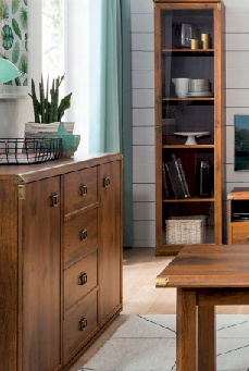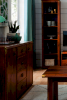 Оригинальный дизайн фасада, точно повторяющий текстуру отполированного дерева отлично впишется в современный интерьер. Дополняет общую композицию необыкновенная форма ручек и закругленные металлические края элементов мебели. В коллекцию Indiana входит большой ассортимент элементов мебели, который поможет создать интересный интерьер в комнате.