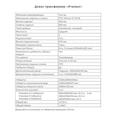 Диван-трансформер Италмас (Аквилон) - за 73 382 руб. в Барнауле. Купите на сайте mebelmarket-barnaul.ru или по телефону 8(800)505-30-63 уже сегодня! Уточнить наличие, комплектацию, актуальную цену можно бесплатно у менеджера ежедневно. Закажите Диван-трансформер Италмас (Аквилон) до конца акции! Доступна покупка в кредит, рассрочку. Доставим со склада или на заказ.