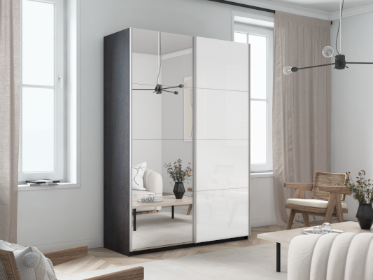 Шкаф-купе 2-х дверный Прайм Зеркало/Белое стекло 1200х2300х570 мм