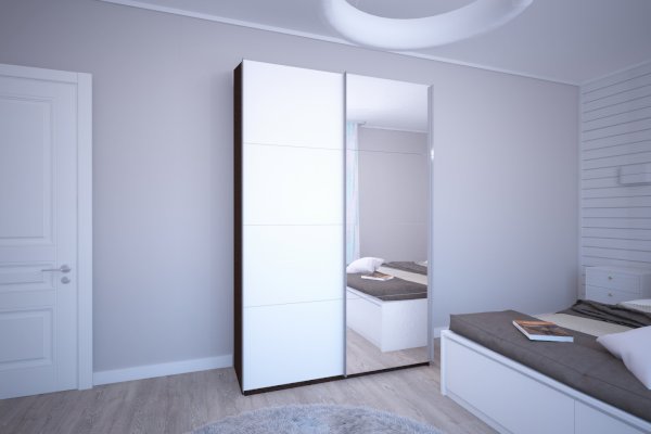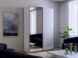 Шкаф-купе 2-х дверный Прайм Зеркало/Белое стекло (Е1)
